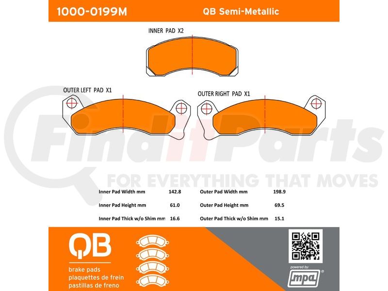 Brake Pad, Brake Pads, Semi-Metallic Pads, Semimet, QB Semimet, QB Cermaic, Brake Pads with hardware