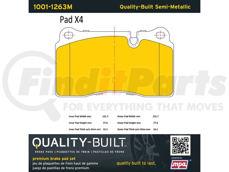 MPA Electrical 1001-1263M - Quality-Built Premium Semi-Metallic Brake Pads w/ Hardware