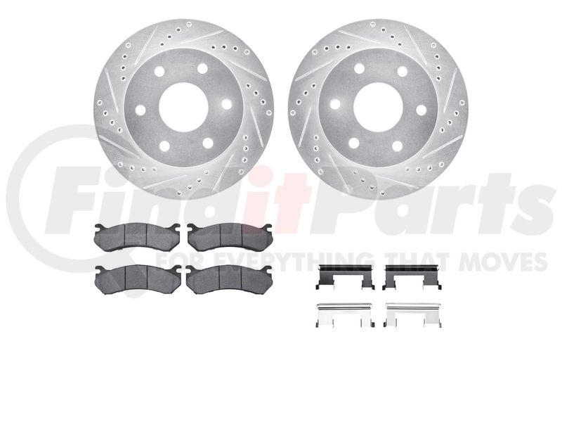 Dynamic Friction Company 7212-48004 - Brake Rotor - Drilled & Slotted - Silver- HD Brake Pad - Hardware
