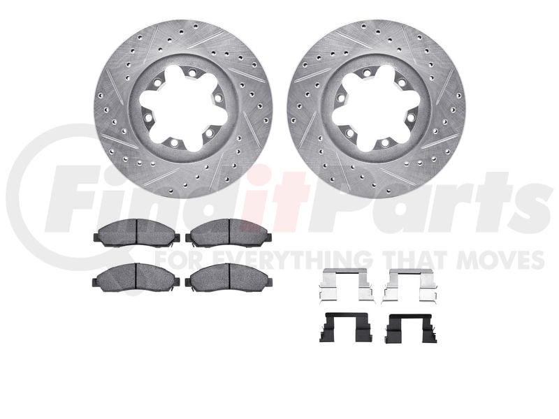Dynamic Friction Company 7512-48056 - Brake Rotor - Dimpled & Slotted - Silver w/5000 Brake Pads & HW Kit