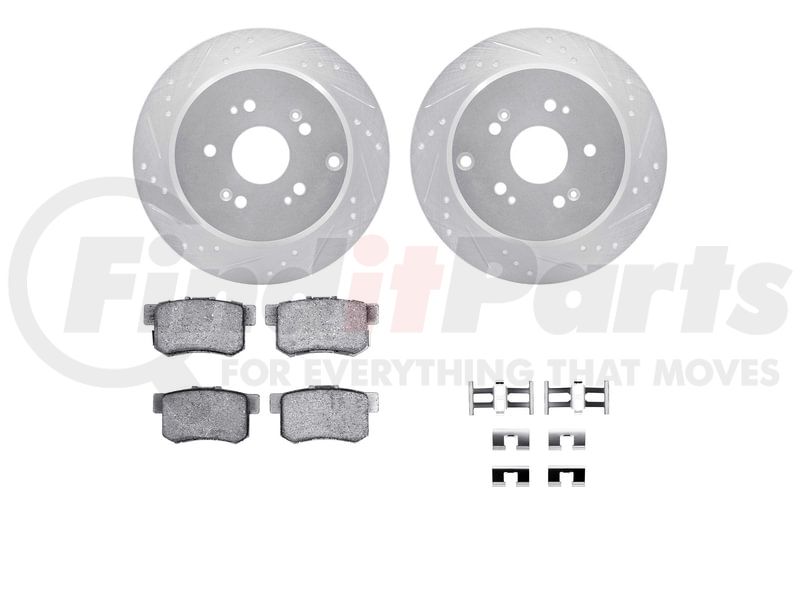 Dynamic Friction Company 7512-59076 - Brake Rotor - Dimpled & Slotted - Silver w/5000 Brake Pads & HW Kit