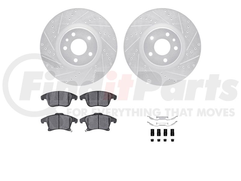 Dynamic Friction Company 7512-54079 - Rotors-Drilled & Slotted-Silver w/ 5000 Advanced Brake Pads Incl Hdw