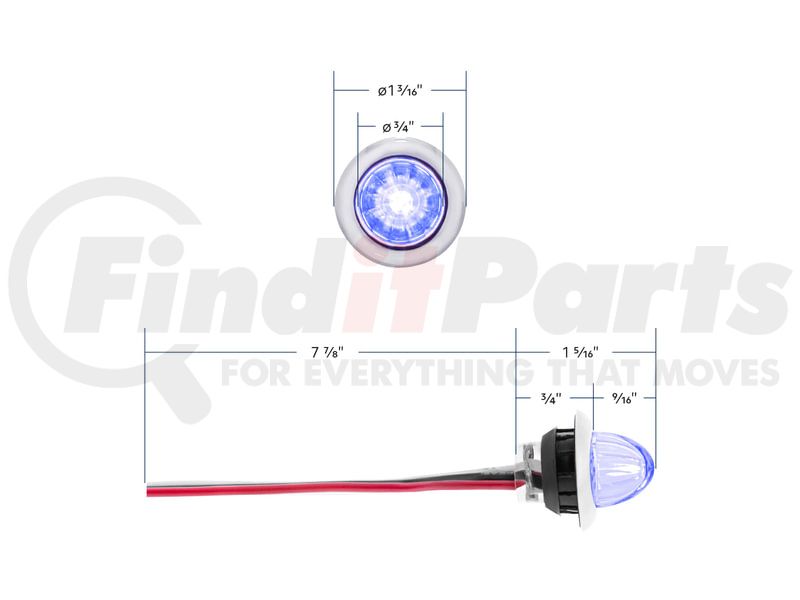 United Pacific 34851 - Clearance Light - 4 LED, Blue LED, Clear Lens, Dual Function, Mini Watermelon Style