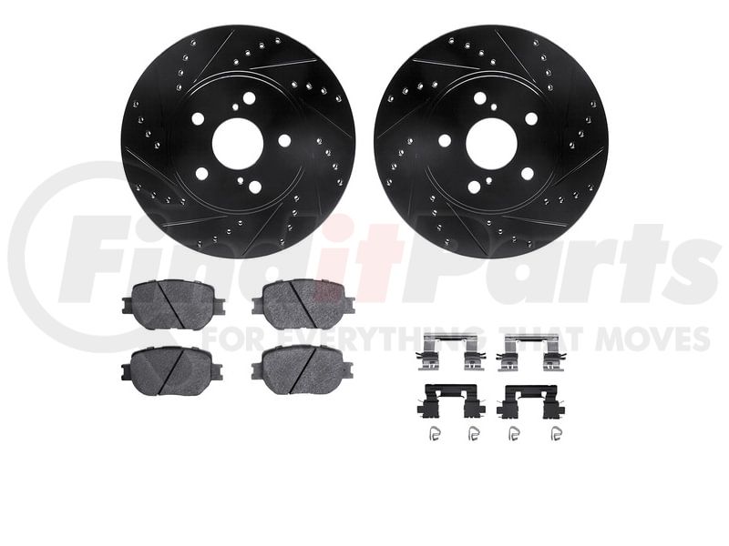 Dynamic Friction Company 8512-76120 - Rotors-Drilled & Slotted-Black w/ 5000 Advanced Brake Pads Incl Hdw