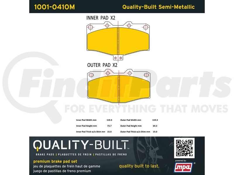 MPA Electrical 1001-0410M - Quality-Built Premium Semi-Metallic Brake Pads w/ Hardware