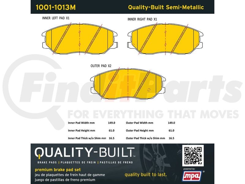MPA Electrical 1001-1013M - Quality-Built Premium Semi-Metallic Brake Pads w/ Hardware