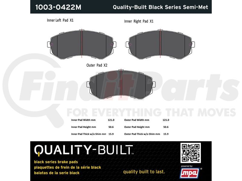 MPA Electrical 1003-0422M - Quality-Built Black Series Semi-Metallic Brake Pads w/ Hardware