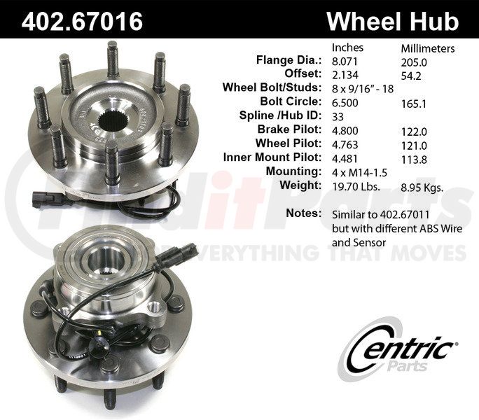 Centric 402.67016 - Centric Premium Hub and Bearing Assembly; With Integral ABS