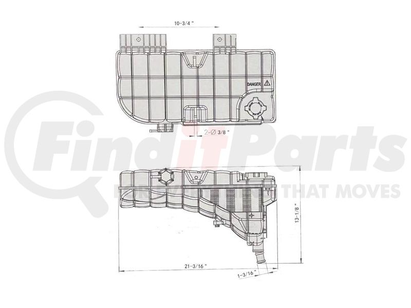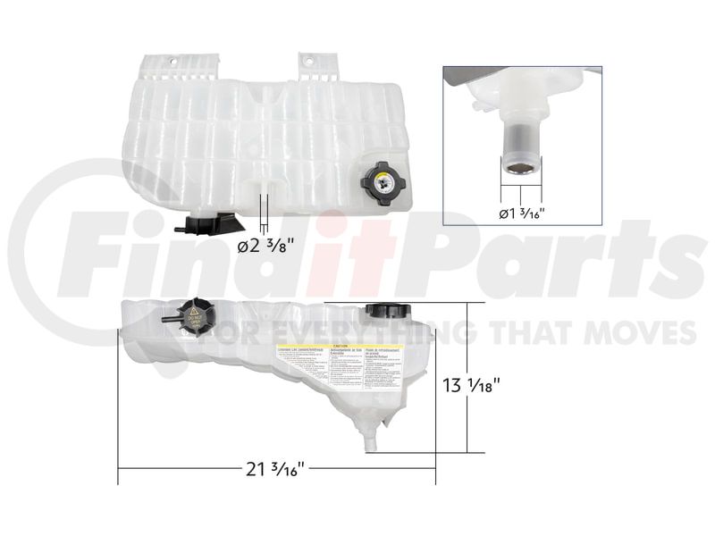 UNITED PACIFIC 26001 Engine Coolant Reservoir - Pressurized, with Coolant Level Sensor, For Peterbilt 389 Kenworth W900