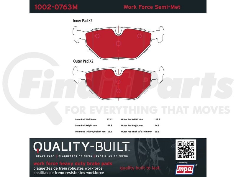 MPA Electrical 1002-0763M - Quality-Built Work Force Heavy Duty Brake Pads w/ Hardware
