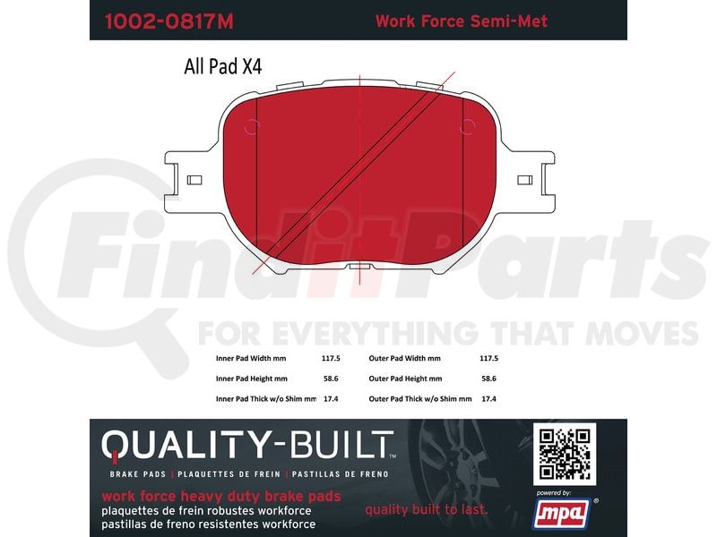 MPA Electrical 1002-0817M - Quality-Built Work Force Heavy Duty Brake Pads w/ Hardware