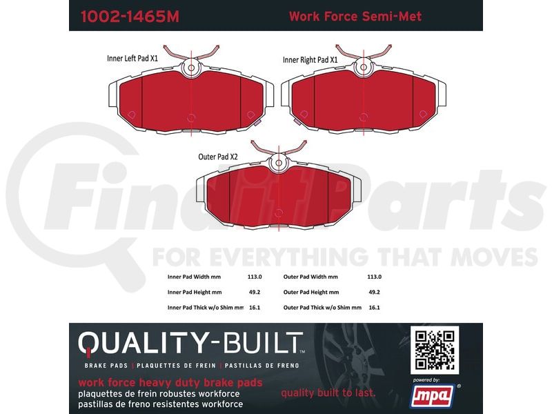 MPA Electrical 1002-1465M - Quality-Built Work Force Heavy Duty Brake Pads w/ Hardware