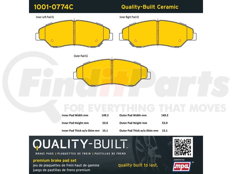 MPA Electrical 1001-0774C - Quality-Built Premium Ceramic Brake Pads w/ Hardware