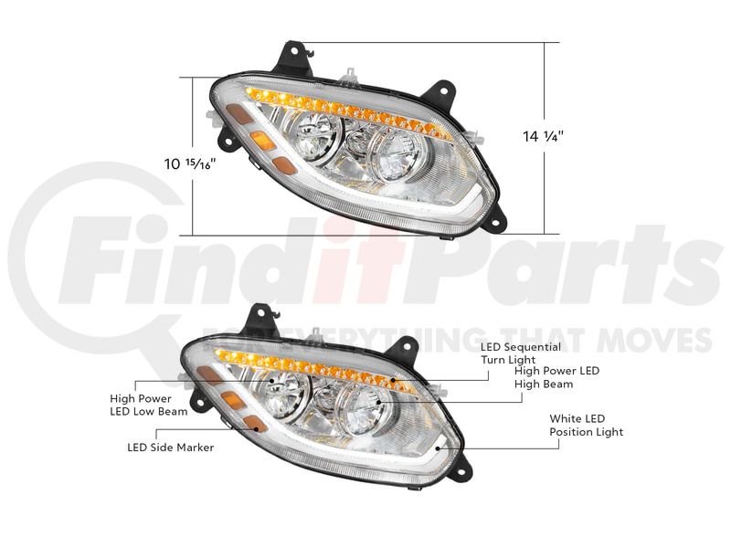 United Pacific 36067 - Headlight Assembly - Passenger Side, Chrome, 86 LED, For 2018-2024 International LT Truck