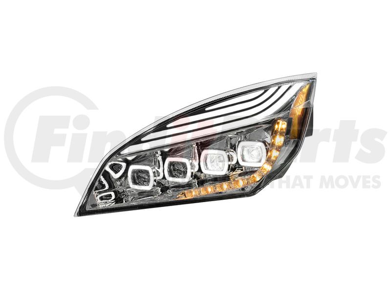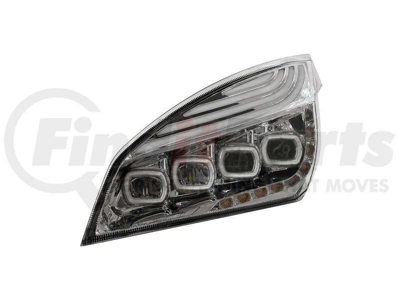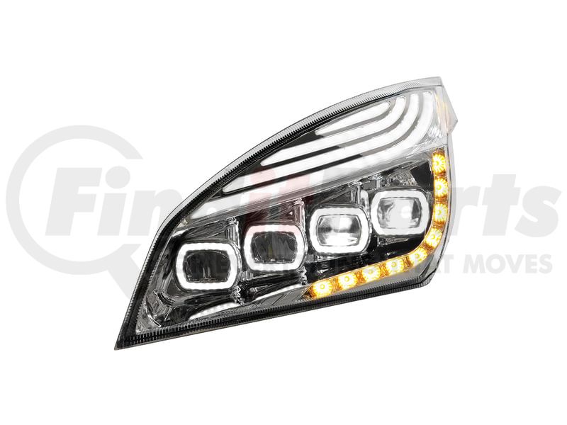 United Pacific 36724 - Headlight Assembly - Driver Side, Chrome, Quad-LED, with DRL and Sequential Signal