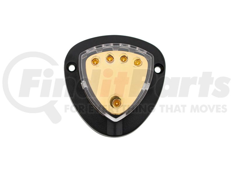 Power Distribution Block - Gold, Triangular, with (1) 4 AWG Input and (4) 8 AWG Outputs