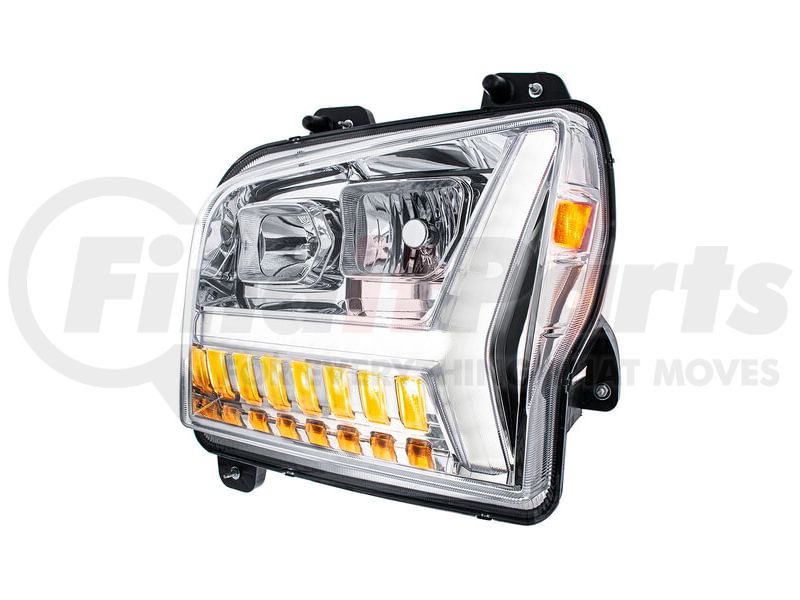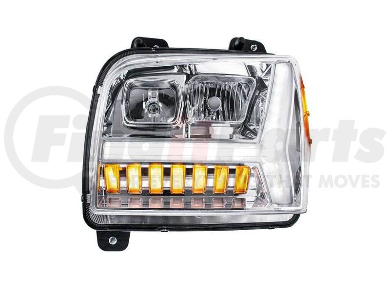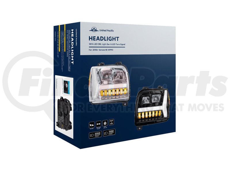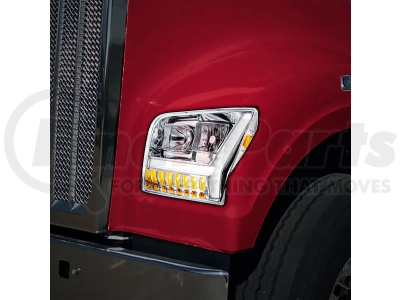 United Pacific 35130 - Chrome Headlight with LED DRL Light Bar / Turn Signal for 2018-2024 Kenworth W990 - Driver Side