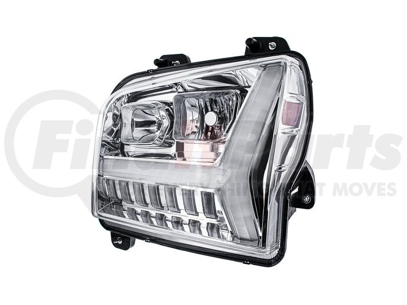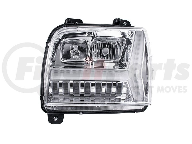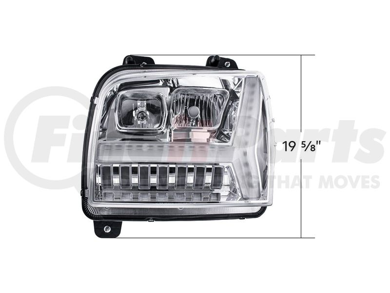Headlight - Driver Side, Chrome, with LED DRL Bar, For 2018-24 Kenworth W990