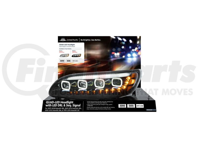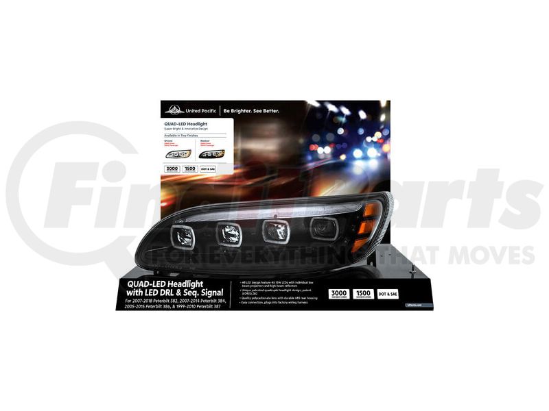 United Pacific 99212 - Headlight Assembly - Modular Display, Steel, Black Base, for Peterbilt 386
