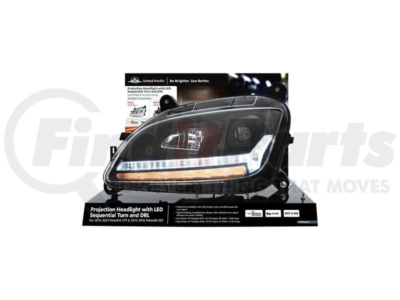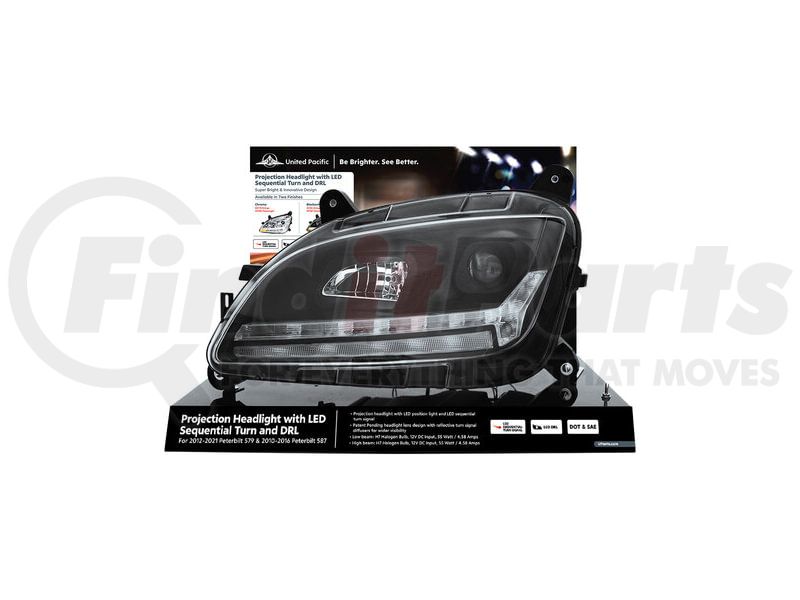 United Pacific 99234 - Headlight Assembly - Modular Display, Steel, Black Base, Blackout, for Peterbilt 579