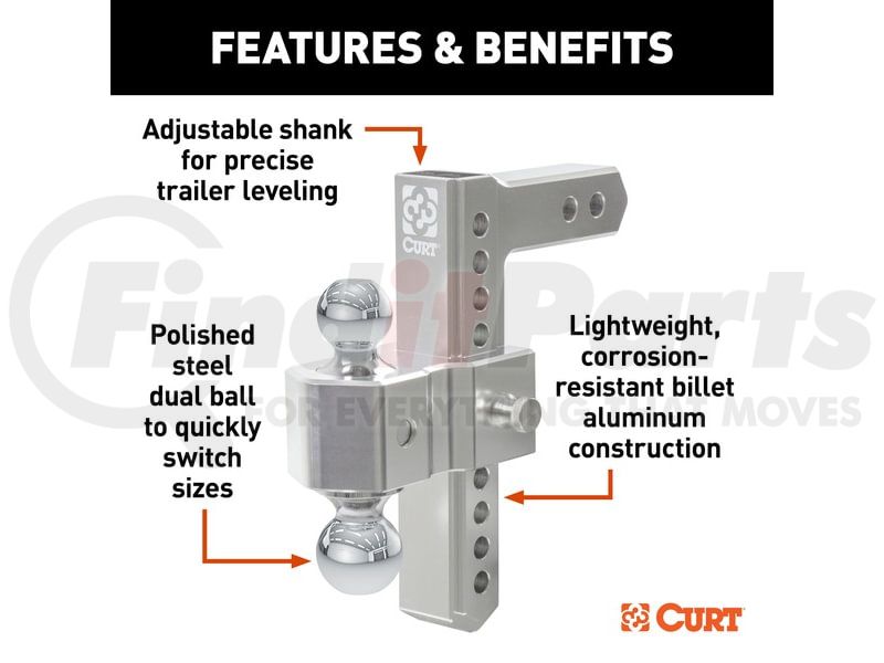- Adjustable dual ball allows for quick and precise trailer leveling on the go