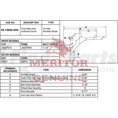 Meritor 15159381003MTB - Meritor Genuine Hydraulic Brake Hub And Drum Assembly