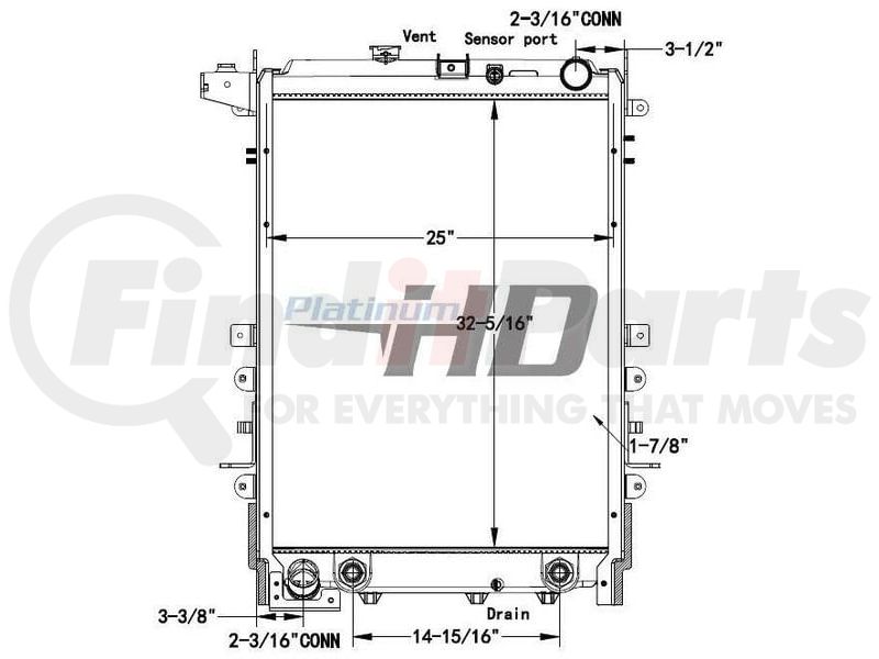 Hino HDC011285PAF - 2019-2022 Hino 338 Series Plastic / Aluminum Radiator (With Framework)Design Style Plastic / Aluminum W/FrameHeight 35 5/16Width 25Depth 1 7/8Inlet 2 5/16 connectionOutlet 2 5/16 connectionEngine Oil Cooler NoTrans Oil Cooler YesMake Hin