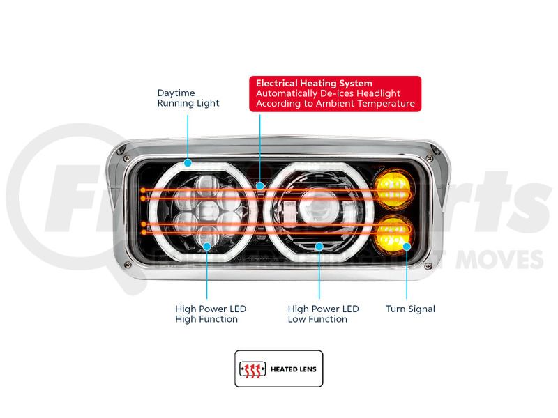 United Pacific 32878 - Headlight - Driver Side (LH), All LED, Black Inner Housing High Power Heated