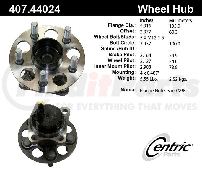 Centric Premium Hub and Bearing Assembly; With Integral ABS