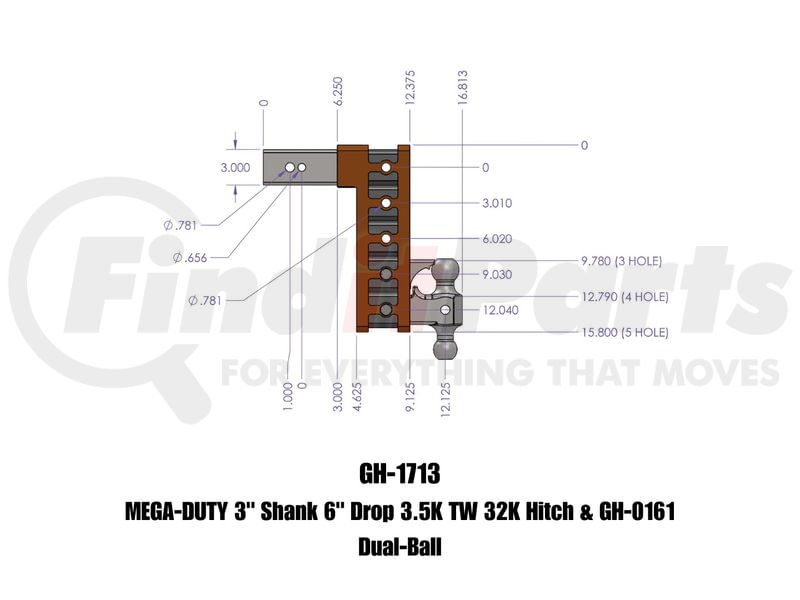 MEGA-DUTY 3" Shank 6" Drop 3.5K TW 32K Hitch & GH-0161 Dual-Ball