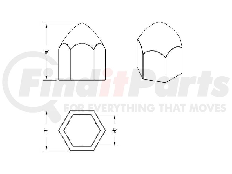 United Pacific 10063P - Bullet Wheel Lug Nut Cover - Plastic, Chrome, 11/16 in. x 1 15/16 in., Push-On