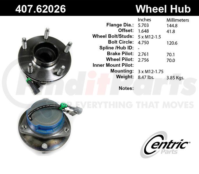 Centric Premium Hub and Bearing Assembly; With Integral ABS