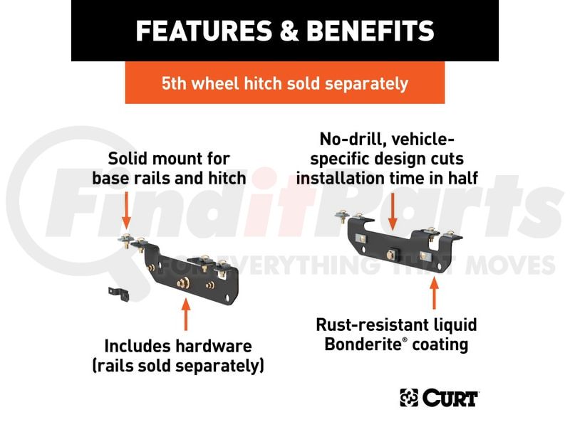 - Designed to be used in combination with CURT base rails #16104 or #16204