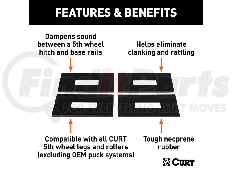 Designed to be placed between a 5th wheel hitch and base rails to dampen sound