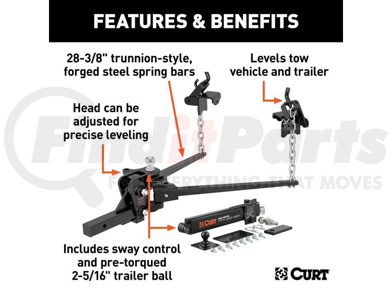 CURT MANUFACTURING 17422 Short Trunnion Bar Weight Distribution Hitch with Sway Control (10-15K; 28-3/8in