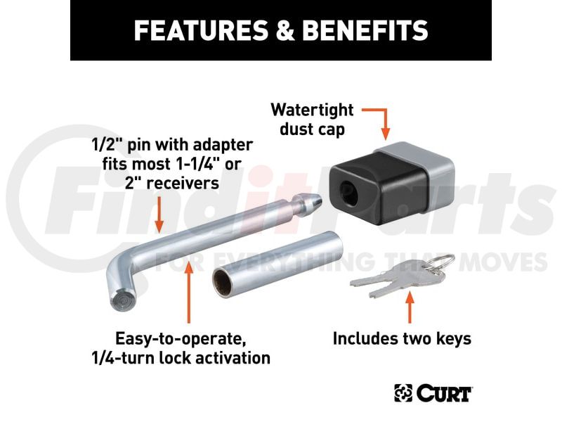 CURT Manufacturing 23024 - 1/2in. Hitch Lock with 5/8in. Adapter (1-1/4in. or 2in. Receiver; Deadbolt; Chro