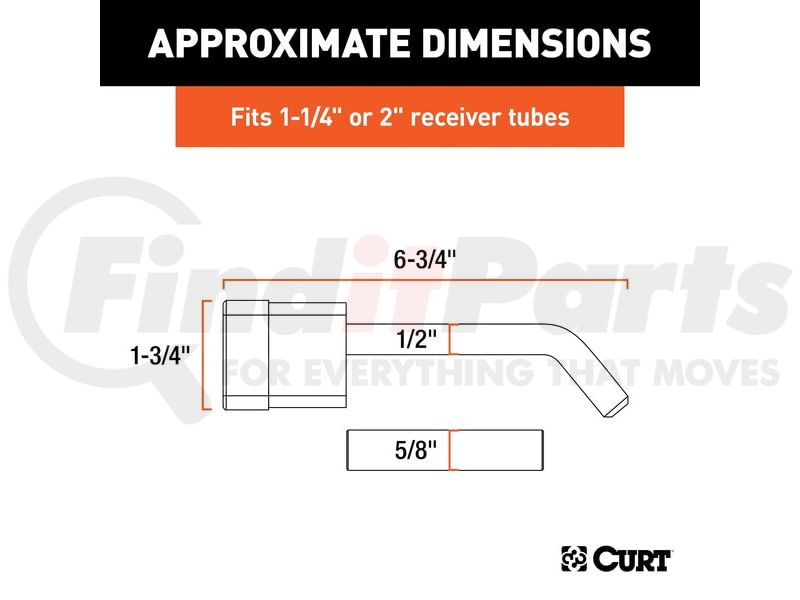 1/2" diameter pin fits 1-1/4" x 1-1/4" receiver tubes