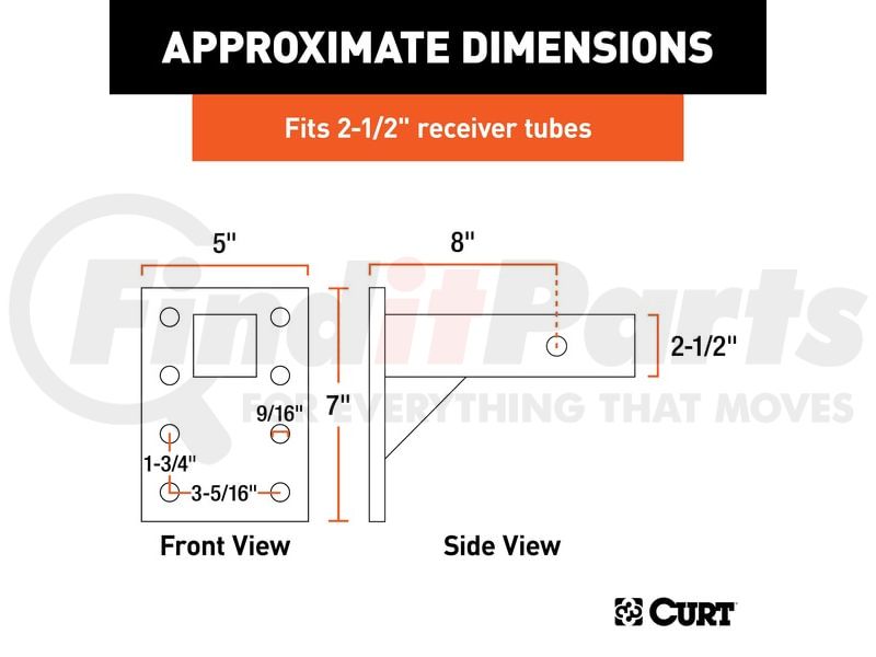 Fits trailer hitches with a 2-1/2" x 2-1/2" receiver tube opening