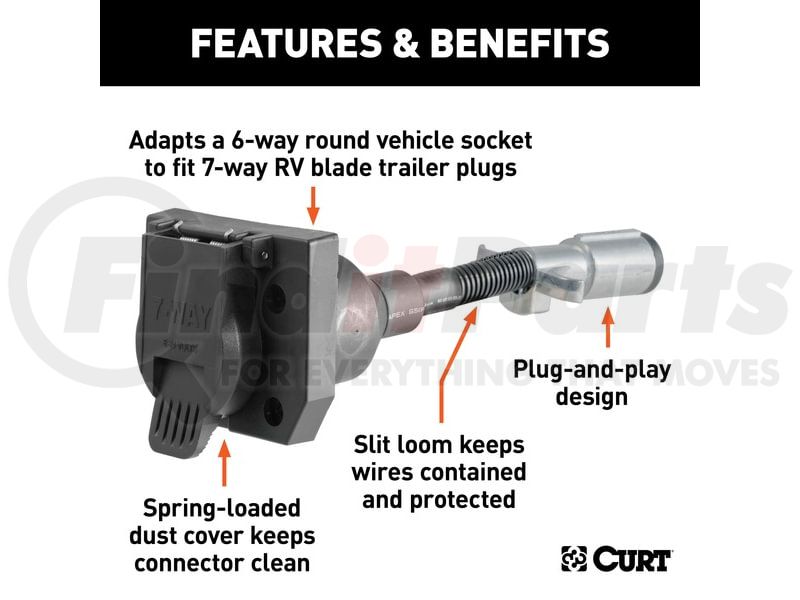 - Adapts 6-way round (center pin taillights) to fit 7-way RV blade trailer plugs