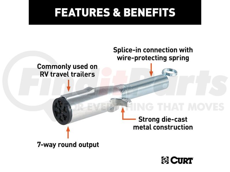 CURT Manufacturing 58181 - 7-Way Round Connector Plug with Spring (Trailer Side; Packaged)