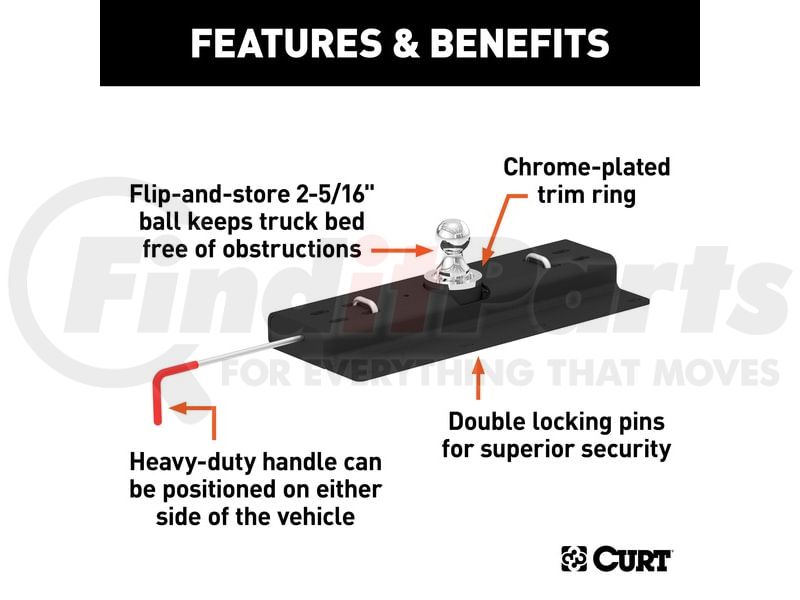 - Removable chrome-plated 2-5/16" trailer ball fits most gooseneck trailers