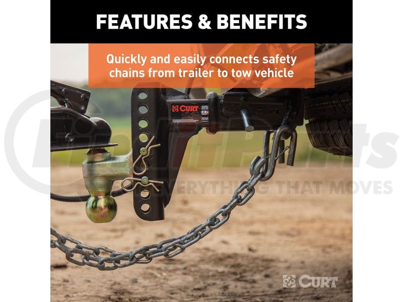 Quickly and easily connects safety chains from trailer to tow vehicle