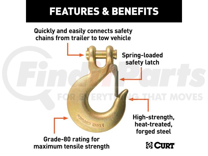 Quickly and easily connects safety chains from trailer to tow vehicle