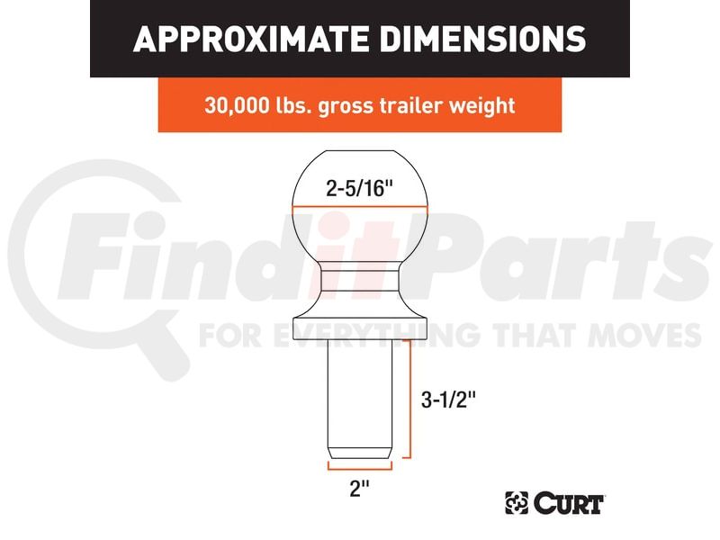 CURT Manufacturing 40088 - 2-5/16in. Trailer Ball (2in. x 3-1/2in. Shank; 30;000 lbs.; Raw Steel)
