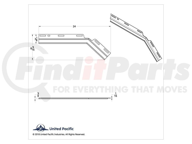 United Pacific 10602 - Mud Flap Hanger - Mud Flap Hanger Plate, 45 Degree