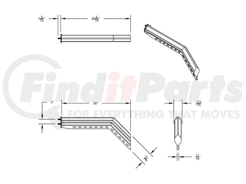 Mud Flap Hanger - 30", Stainless, 45 Degree Angled, Heavy Duty, 2" Bolt Pattern
