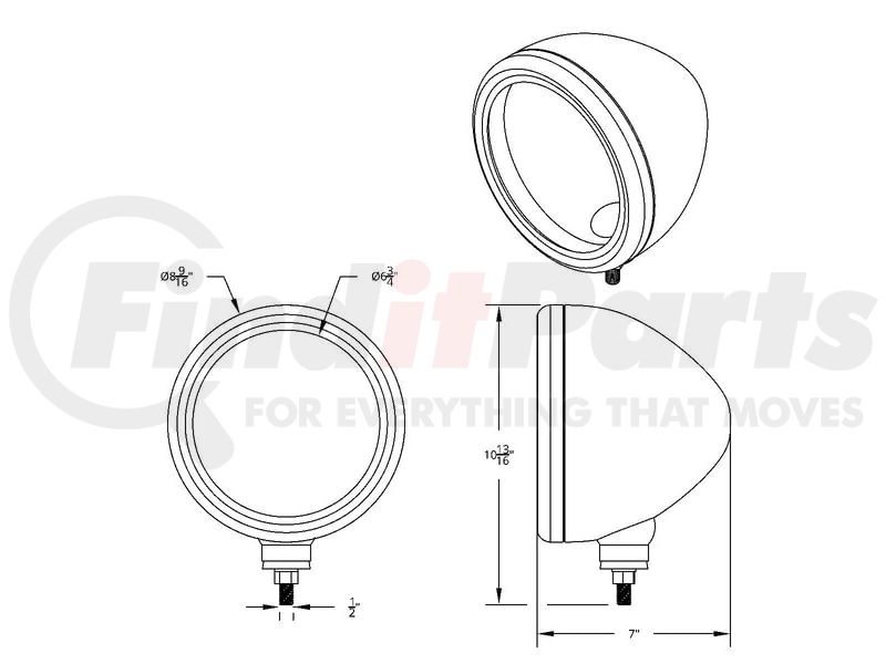 United Pacific Stainless Steel "BULLET" Classic Headlight Housing