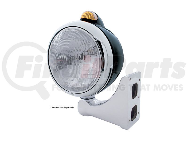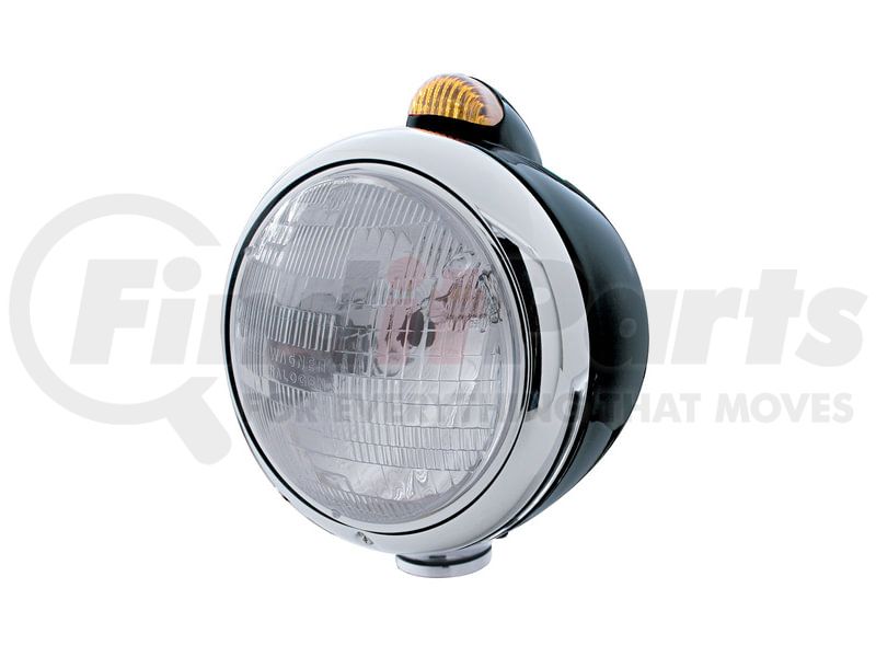 United Pacific 32412 - Guide Headlight - 682-C Style, RH/LH, 7", Round, Powdercoated Black Housing, H6024 Bulb, with Top Mount, 5 LED Dual Mode Signal Light, Amber Lens