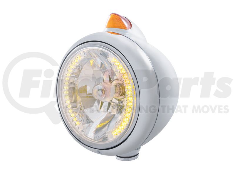 United Pacific 32610 - Guide Headlight - 682-C Style, RH/LH, 7", Round, Polished Housing, H4 Bulb, with 34 Bright Amber LED Position Light and Top Mount, Original Style, 5 LED Signal Light, Amber Lens