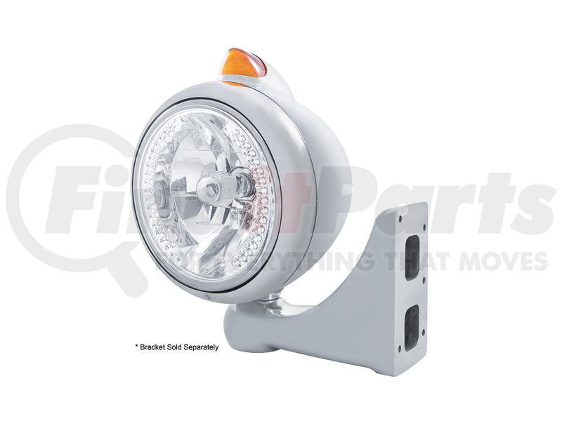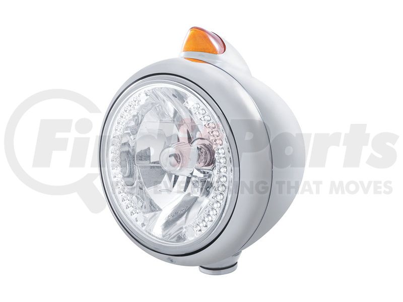 United Pacific 32628 - Guide Headlight - 682-C Style, RH/LH, 7", Round, Chrome Housing, H4 Bulb, with 34 Bright White LED Position Light and Top Mount, Original Style, 5 LED Signal Light, Amber Lens